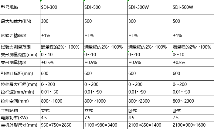主機為四立柱或雙立柱剛性框架,有立式和臥式兩種機型,絲杠調(diào)節(jié)拉頭移動,加載速度無級設(shè)定。