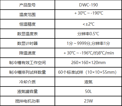 DWC-190Y沖擊試驗低溫槽 產品技術參數