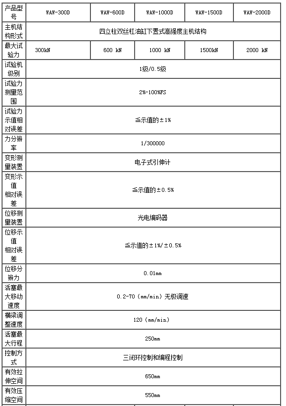濟(jì)南試金WAW-D系列微機(jī)屏顯控制電液伺服萬能試驗(yàn)機(jī)主要用于金屬材料的拉伸、壓縮、彎曲等力學(xué)性能試驗(yàn),增加簡單的附件后可對(duì)水泥、混凝土、磚、瓦、橡膠及其制品進(jìn)行檢測(cè)。